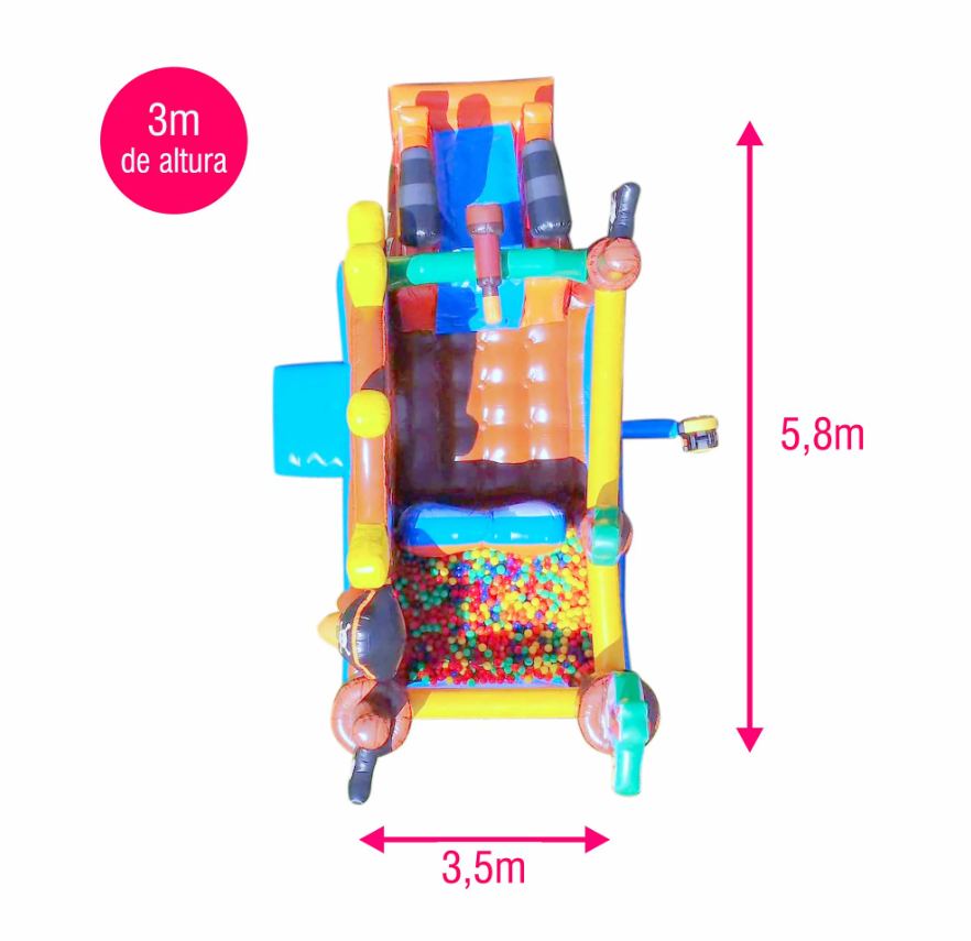 Ele é um verdadeiro modelo 3 em 1 👀. Ao alugar um único brinquedo, você entrega as seguintes experiências diferentes para as crianças: área de pula-pula, mini escalada, escorregador e ainda um espaço extra que pode ser transformado em uma mini piscina de bolinhas. É versátil, estratégico e extremamente atrativo para festas com pouco espaço — você coloca um único inflável na festa, mas entrega a sensação de vários brinquedos juntos. É eficiência operacional com alto impacto visual e diversão sem limites!