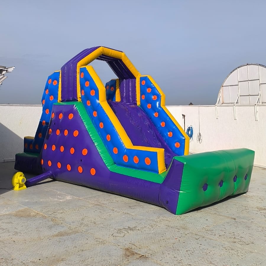 O desafio começa com uma escalada cheia de emoção! Com alças de apoio e uma subida inflável, as crianças vão testar suas habilidades de equilíbrio e força, tudo com total segurança. Quando chegam no topo, a diversão continua com uma descida super divertida no tobogã, acompanhada de muitas gargalhadas e a vontade de subir de novo!